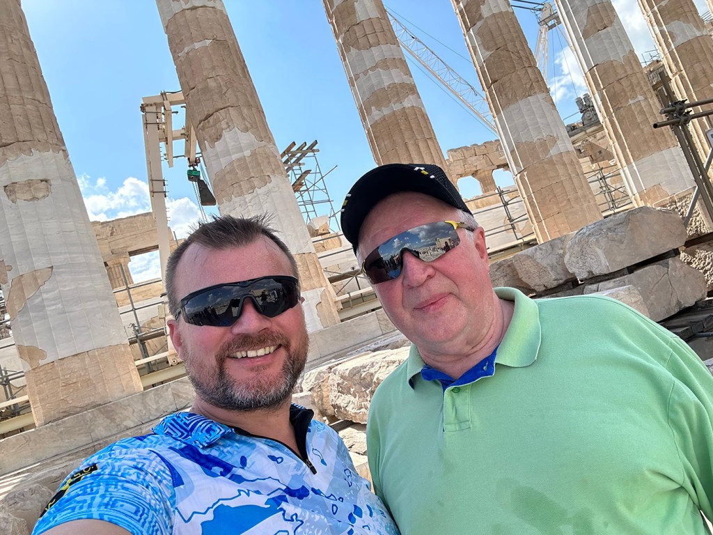 Fredagen ble min velfortjente fridag, og jeg tilbrakte den sammen med pappa, som fikk muligheten til å besøke Akropolis i Athen. Akropolis, som er en del av verdensarven, er en høyde som stiger majestetisk over Athen, og den dominerer byen. Det er mest kjent for Parthenon-tempelet, dedikert til den greske gudinnen Athena, og det er en strålende representasjon av den klassiske greske arkitekturen. Dette ble en hyggelig opplevelse til tross for varmen og utrolig mye folk.