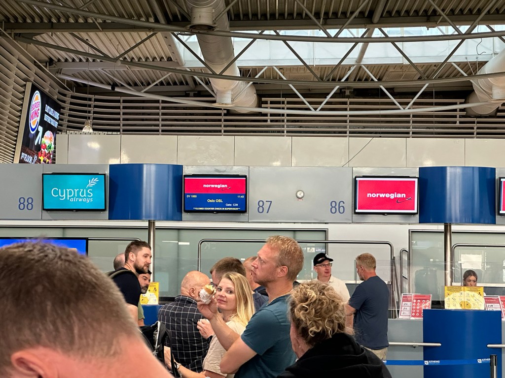 Søndagen var reisedagen hjem til Norge, en dag som utvilsomt kommer til å gå inn i historien. Vi var på flyplassen hele fire timer før avgang, men det hjalp dessverre ikke med tanke på at flyet vårt skulle gå presis. Vi tilbrakte hele tiden til flyet gikk i kø for å sjekke inn og komme oss gjennom sikkerhetskontrollen. Prosessen var preget av forvirring og treghet, og det føltes som om vi var fanget i et endeløst byråkratisk mareritt. Tiden gikk sakte, og stresset over å potensielt gå glipp av flyet økte for hvert minutt som gikk. For mange av oss var dette en skuffende og opprivende opplevelse. Etter en fantastisk uke med spenning og mestring i konkurransene, ble vi møtt med en kaotisk og frustrerende avslutning på turen. Flyplasspersonalet var overarbeidet og overveldet, og det virket som om systemet var i ferd med å bryte sammen under trykket fra reisende som forsøkte å komme seg hjem med våpen.